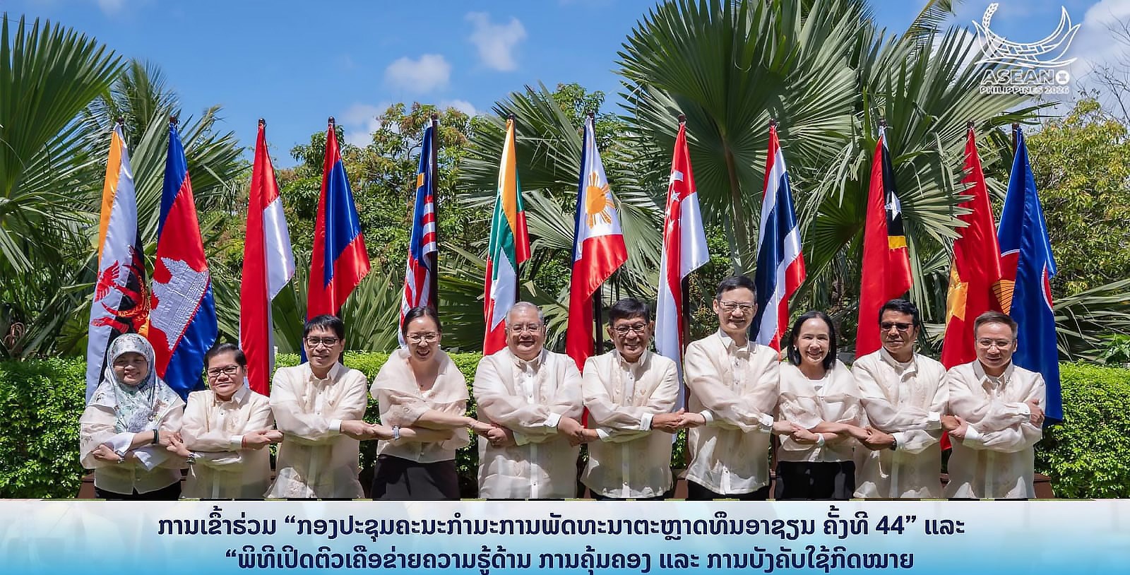 ການເຂົ້າຮ່ວມ ກອງປະຊຸມຄະນະກໍາມະການພັດທະນາຕະຫຼາດທຶນອາຊຽນ ຄັ້ງທີ 44 ແລະ “ພິທີເປີດຕົວເຄືອຂ່າຍຄວາມຮູ້ດ້ານ ການຄຸ້ມຄອງ ແລະ ການບັງຄັບໃຊ້ກົດໝາຍ