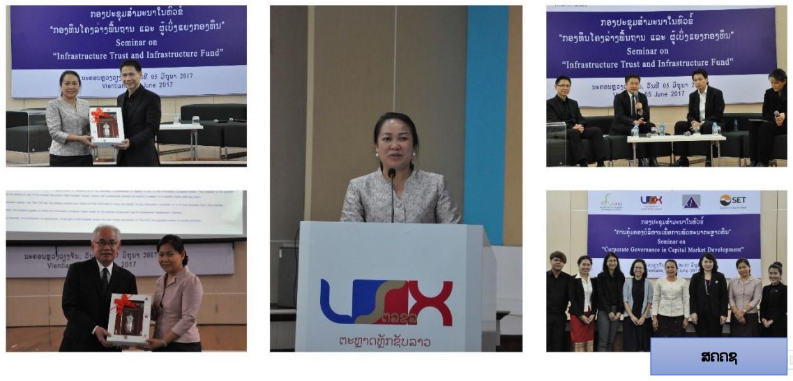 ສໍານັກງານຄະນະກໍາມະການຄຸ້ມຄອງຫລັກຊັບ (ສຄຄຊ) ຮ່ວມກັບ ຕະຫລາດຫລັກຊັບແຫ່ງປະເທດໄທ (ຕລທ) ໄດ້ຈັດກອງປະຊຸມສໍາມະນາໃນ 2 ຫົວຂໍ້ ຂຶ້ນຄື: 1). “ກອງທຶນໂຄງລ່າງພື້ນຖານ ແລະ ຜູ້ເບິ່ງແຍງກອງທຶນ (Infrastructure Trust and Infrastructure Fund)” ແລະ 2). “ການຄຸ້ມຄອງບໍລິຫານເພື່ອພັດທະນາວຽກງານຕະຫລາດທຶນ (Corpora...