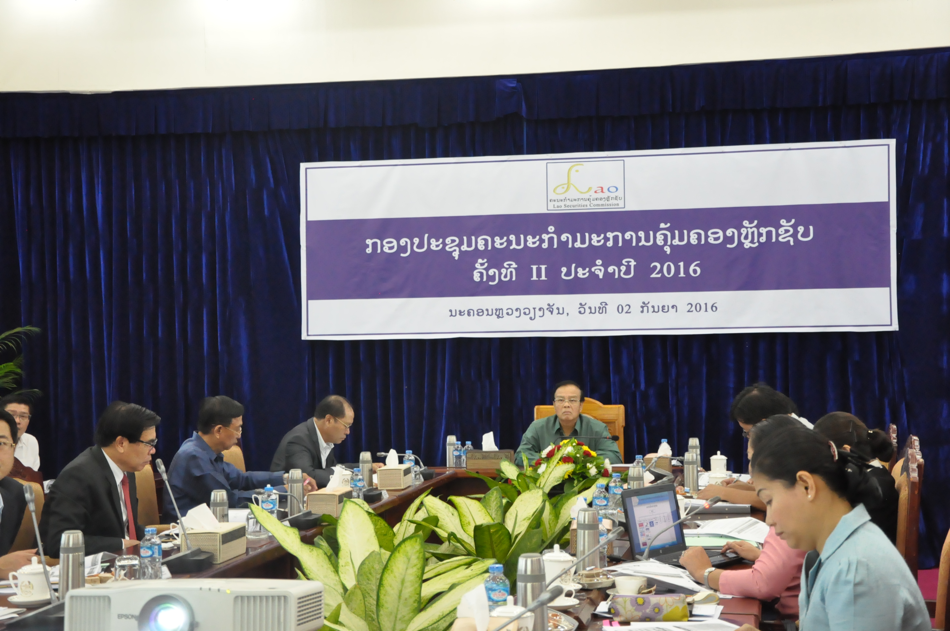 ກອງປະຊຸມ ຄະນະກຳມະການຄຸ້ມຄອງຫຼັກຊັບ (ຄຄຊ) ຄັ້ງທີ II ປະຈໍຳປີ 2016 ໄດ້ຈັດຂຶ້ນ ໃນຕອນເຊົ້າຂອງວັນທີ 02 ກັນຍາ 2016 ທີ່ຜ່ານມາ ທີ່ຫ້ອງປະຊຸມໃຫຍ່ທະນາຄານແຫ່ງ ສປປ ລາວ, ນະຄອນຫຼວງວຽງຈັນ ໂດຍການເປັນກຽດເຂົ້າຮ່ວມເປັນປະທານ ຂອງ ທ່ານ ສົມດີ ດວງດີ ຮອງນາຍົກລັດຖະມົນຕີ, ລັດຖະມົນຕີກະຊວງການເງິນ, ປະທານ ຄຄຊ, ພ...