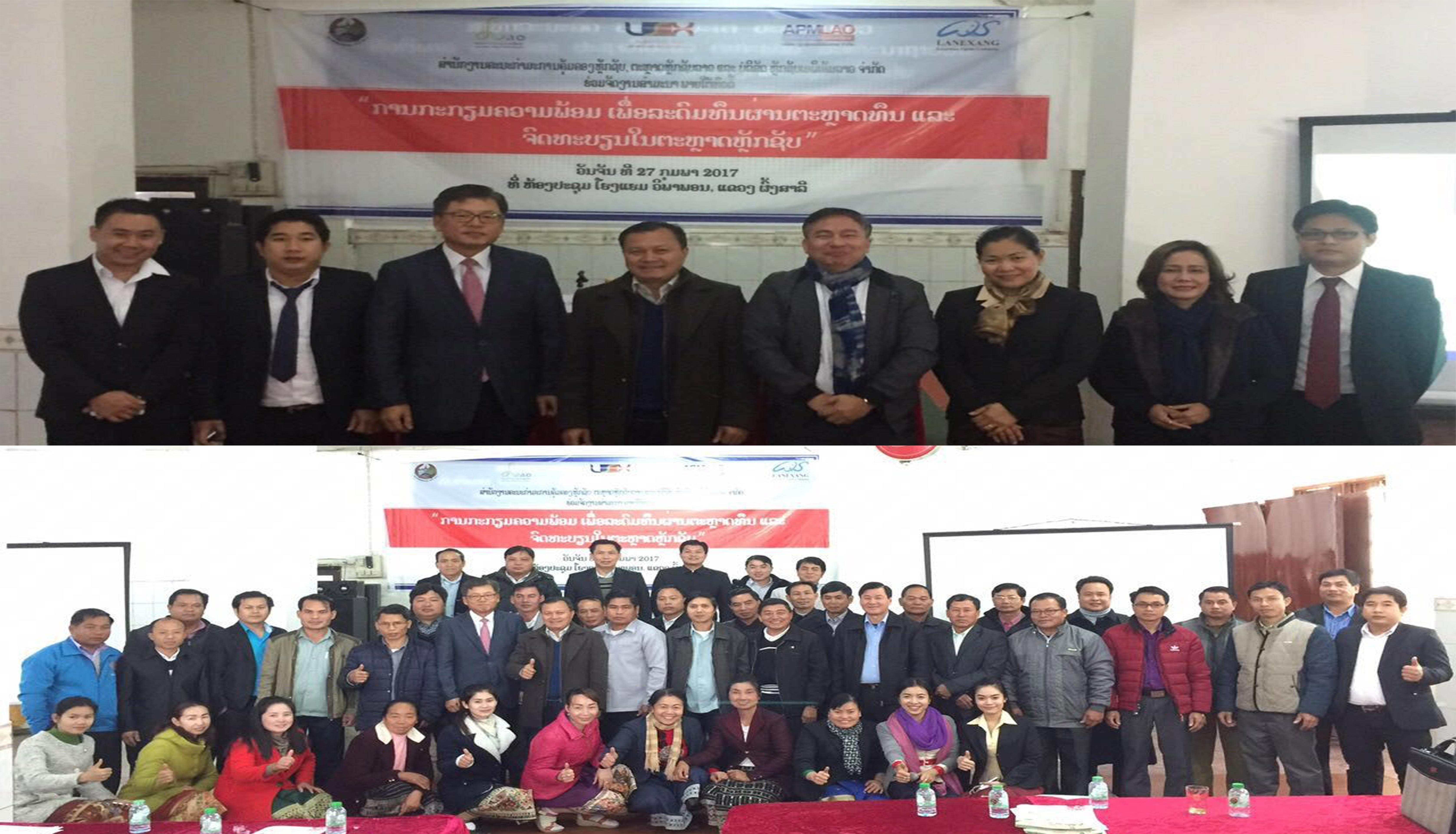 ໃນຕອນເຊົ້າ ເວລາ 8:30 ໂມງ ຂອງວັນທີ 27 ກຸມພາ 2017 ທີ່ຜ່ານມາ, 4 ພາກສ່ວນ ຄື: ສຳນັກງານຄະນະກຳມະການຄຸ້ມຄອງຫຼັກຊັບ, ຕະຫຼາດຫຼັກຊັບ, ບໍລິສັດເອພີເອັມລາວ ຈຳກັດ ແລະ ບໍລິສັດຫຼັກຊັບ ລ້ານຊ້າງ ມະຫາຊົນ ຮ່ວມກັບ ຫ້ອງວ່າການແຂວງຜົ້ງສາລີ, ໄດ້ຈັດກອງປະຊຸມສຳມະນາ ໃນຫົວຂໍ້: “ການກະກຽມຄວາມພ້ອມ ເພື່ອລະດ...