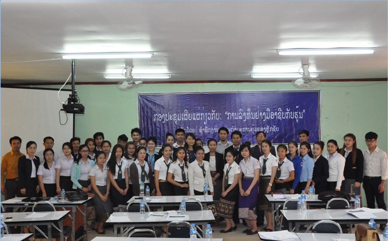 ສຳນັກງານ ຄະນະກຳມະການຄຸ້ມຄອງຫຼັກຊັບ (ສຳນັກງານ ຄຄຊ) ຮ່ວມກັບ ຄະນະກະເສດສາດ ມະຫາວິທະຍາໄລແຫ່ງຊາດ ໄດ້ຈັດກອງປະຊຸມເຜີຍແຜ່ໃນຫົວຂໍ້: “ການລົງທຶນຢ່າງມືອາຊີບກັບຮຸ້ນ” ຂຶ້ນໃນວັນທີ 22 ເມສາ 2016, ໂດຍການເປັນປະທານຂອງທ່ານ ຮສ. ດຣ. ອຸດົມພອນ ຄຳເພັງ ຄະນະບໍດີ ຄະນະກະເສດສາດ ມະຫາວິທະຍາໄລແຫ່ງຊາດ ແລະ ທ່ານ ນ. ນ...