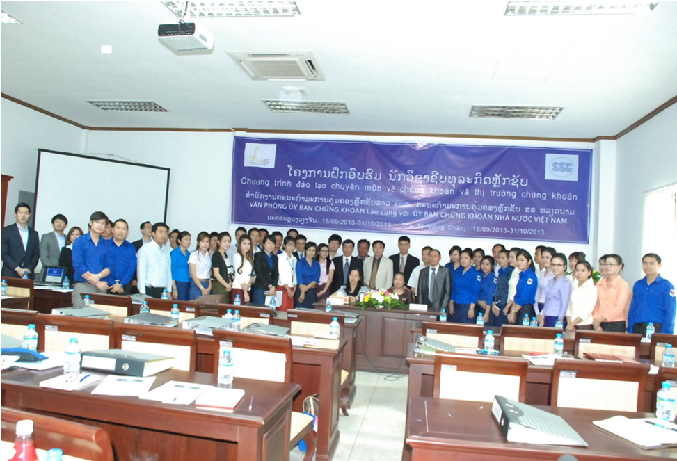 ໂຄງການຝຶກອົບຮົມນັກວິຊາຊີບທຸລະກິດຫຼັກຊັບ ໂດຍການຮ່ວວມມືຂອງ ສໍານັກງານຄະນະກໍາມະການ ຄຸ້ມຄອງຫຼັກຊັບ ແລະ ຕະຫຼາດຫຼັກຊັບລາວ ກັບ ຄະນະກໍາມະການຄຸ້ມຄອງຫຼັກຊັບ ສສ. ຫວຽດນາມ (ຄລຕ ສສ. ຫວຽດນາມ) ດໍາເນີນມາເປັນເວ ລາ 7 ອາທິດ ແລະ ໄດ້ສໍາເລັດລົງ ໃນວັນທີ 30 ຕຸລາ 2013 ທີ່ສະຖາບັນການທະນາຄານ.