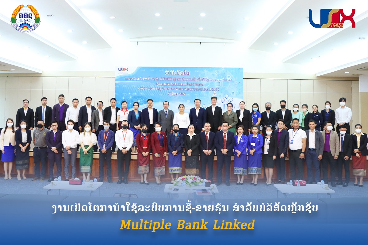 ງານເປີດໂຕການນຳໃຊ້ລະບົບການຊື້ ຂາຍຮຸ້ນ ສໍາລັບບໍລິສັດຫຼັກຊັບໃຫ້ສາມາດເຊື່ອມຕໍ່ໄດ້ກັບຫຼາຍທະນາຄານຕົວແທນ ຫຼື Multiple Bank Linked ຢ່າງເປັນທາງການ