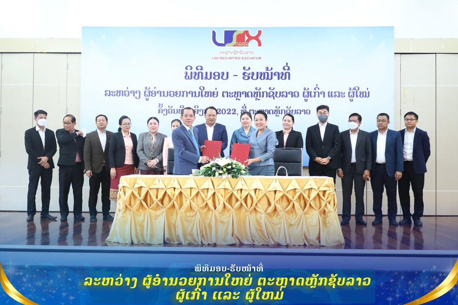 ພິທີມອບ-ຮັບໜ້າທີ່ ຜູ້ອຳນວຍການໃຫຍ່ ຕະຫຼາດຫຼັກຊັບລາວ (ຕລຊລ) ລະຫວ່າງຜູ້ເກົ່າ ແລະ ຜູ້ໃໝ່