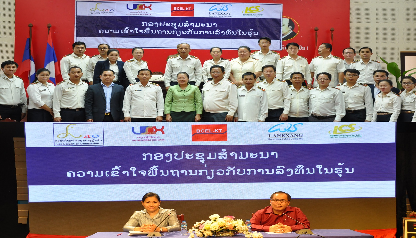 ສໍານັກງານຄະນະກໍາມະການຄຸ້ມຄອງຫຼັກຊັບ(ສຄຄຊ) ສືບຕໍ່ ຮ່ວມກັບ ຕະຫຼາດຫຼັກຊັບລາວ ແລະ 3 ບໍລິສັດຫຼັກຊັບຄື: ບໍລິສັດຫຼັກຊັບ ທຄຕລ-ກທ ຈໍາກັດ, ບໍລິສັດ ຫຼັກຊັບ ລ້ານຊ້າງມະຫາຊົນ, ບໍລິສັດຫຼັກຊັບ ລາວ-ຈີນ ຈໍາກັດ. ຈັດກອງປະຊຸມ ໂຄສະນາເຜີຍແຜ່ວຽກງານຕະຫຼາດທຶນ ໃນຫົວຂໍ້ ”ຄວາມເຂົ້າໃຈພື້ນຖານກ່ຽວກັບການລົງທຶ...